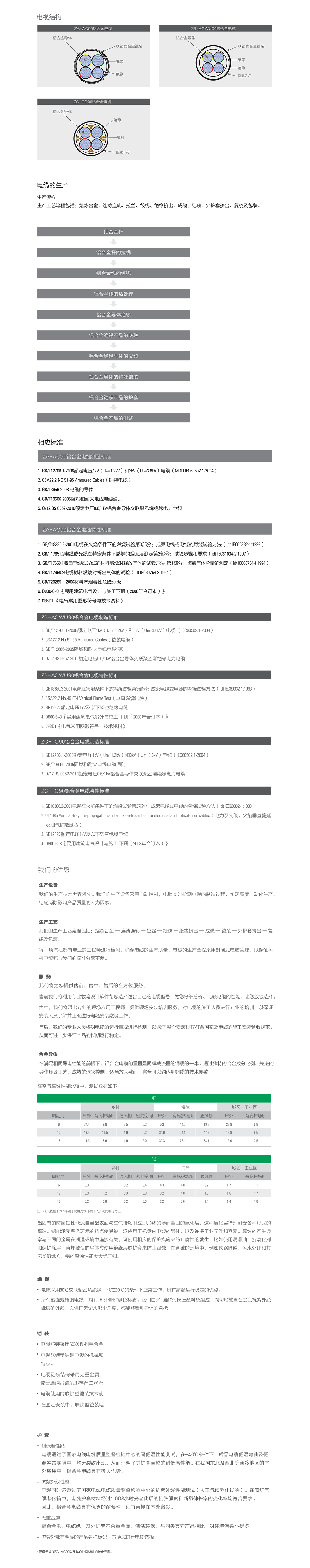 機(jī)械和電氣性能符合或超過(guò)GB/T31840.1-2015《額定電壓1kV(Um=1.2kV)到35kV(Um=40.5kV) 鋁合金芯擠包絕緣電力電纜 第1部分:額定電壓1kV (Um=1.2kV)和3kV (Um=3.6kV)電纜》性能要求。