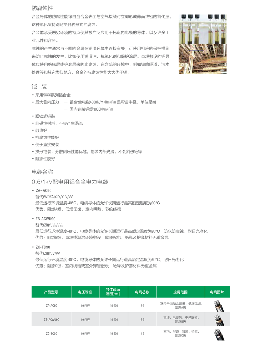 產(chǎn)品特性: 導(dǎo)體采用鋁合金AA8030高導(dǎo)電合金導(dǎo)體,高抗蠕變性、高柔韌性、高延伸率、抗拉強(qiáng)度增大,連接安全穩(wěn)定。